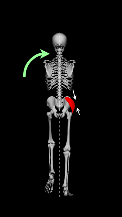 Together with it, muscles climb up the spine like the erector spinae, activating to keep the spine straight, counteracting the tendency of the torso to bend towards the ground.