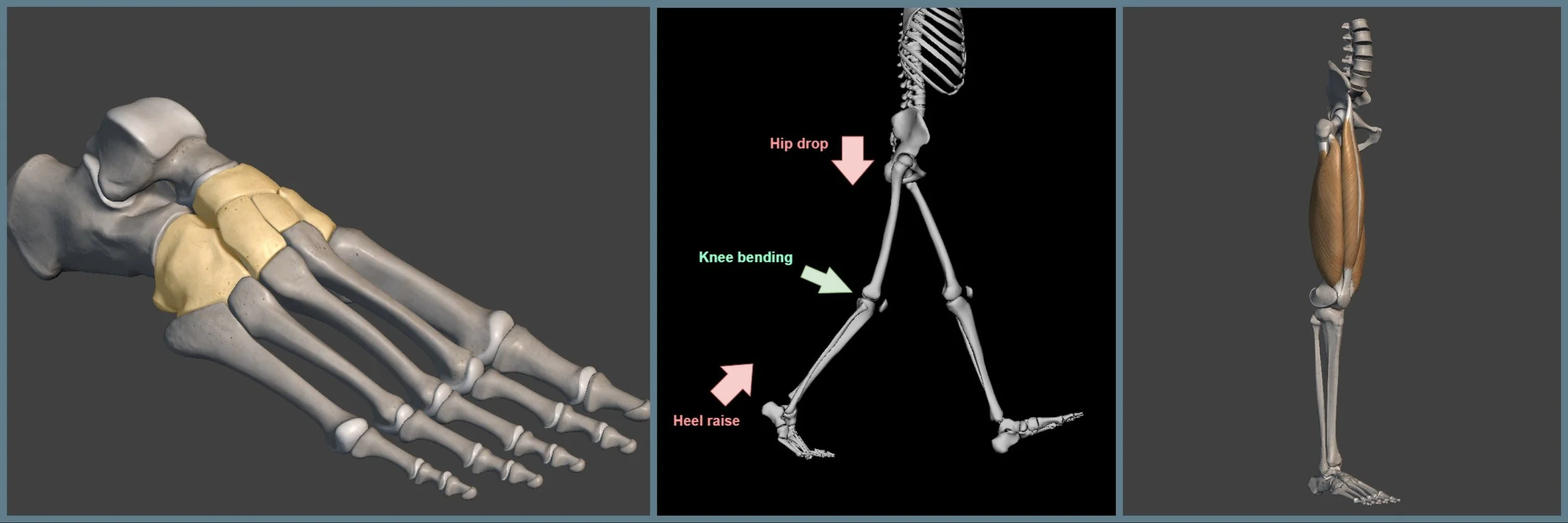 This might require some previous knowledge of how muscles work and the basics of the walking gait cycle. If you haven't read them, I invite you to stop at part one of this series and this series of short posts. (Walking Gait Analysis for Animation, Part I: https://www.animatornotebook.com/learn/walking-part-1, Anatomy in Motion series part I: https://www.animatornotebook.com/blog/anatomy-in-motion-1)